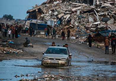 ගාසා තීරයට මහ වැසි ඇද හැලෙමින් පවතින බවත්, ගාසා තීරයේ ප්රදේශ රැසක් ජලයෙන් යටවී ඇති බවත් විදෙස් මාධ්ය වාර්තා කළේ