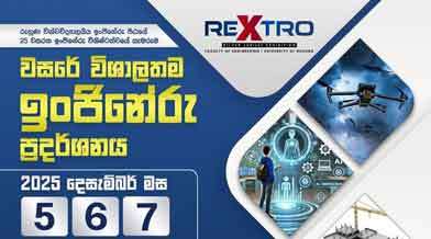 රුහුණු විශ්ව විද්යාලයේ ඉංජිනේරු පීඨය, සිය රජත ජයන්තිය සමරයි. ඒ නිමිත්තෙන්, දැනුම පමණක් නොව, සතුට සහ විනෝදය ද කැටි කරගත් REXTRO-2025 ඉන්ජිනේරු ප්රදර්ශනය 2025 දෙසැම්බර් 5, 6 සහ 7 ගාල්ල, හපුගල, රුහුණු විශ්ව විද්යාලයීය ඉංජිනේරු පීඨ පරිශ්රයේදී පැවැත්වෙයි.